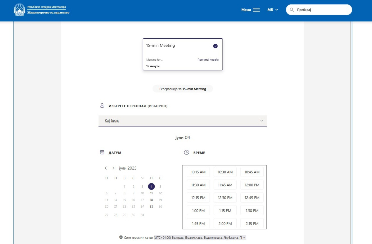 Скопје, 26. јуни 2025 (ИНПРЕС) – Секој петок, почнувајќи од 4-ти јули граѓаните ќе може да закажат 15-минутна средба со министерот за здравство Азир Алиу, преку апликацијата „Отворен кабинет“ на веб страницата на Министерството за здравство (www.zdravstvo.gov.mk).