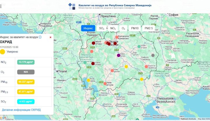 Скопје, 17. декември 2025 (ИНПРЕС) – Ставен во функција нов веб портал за квалитет на воздухот, информраат...
